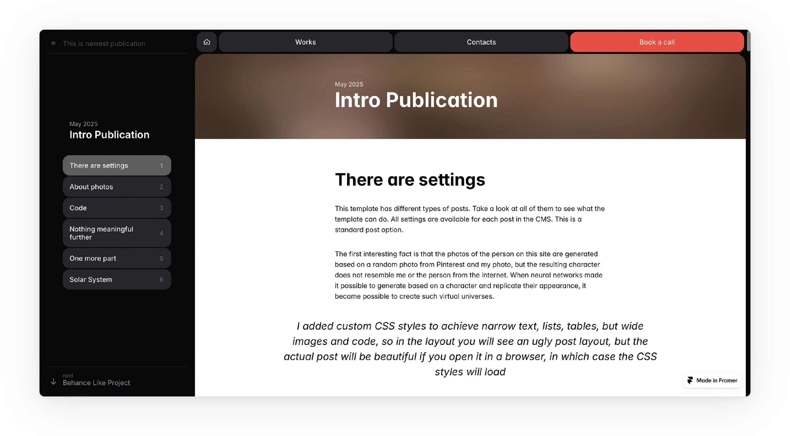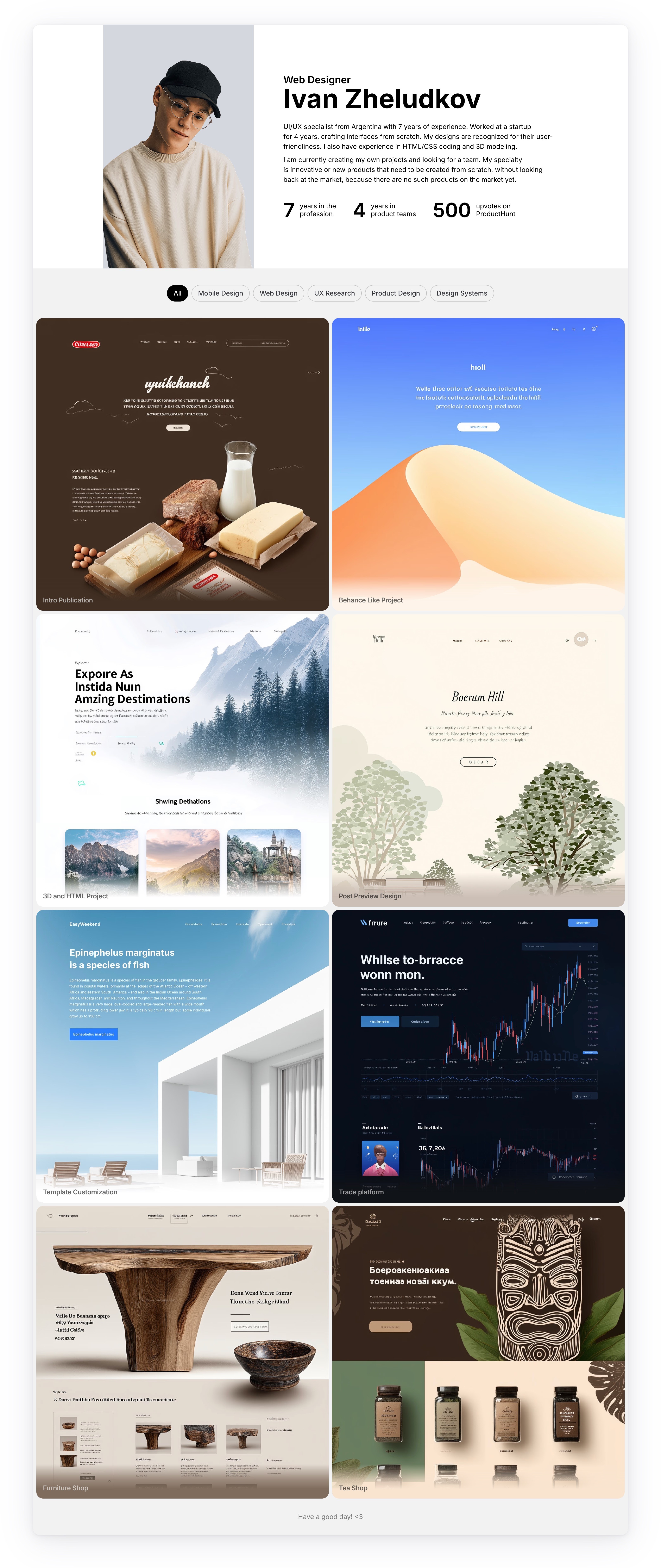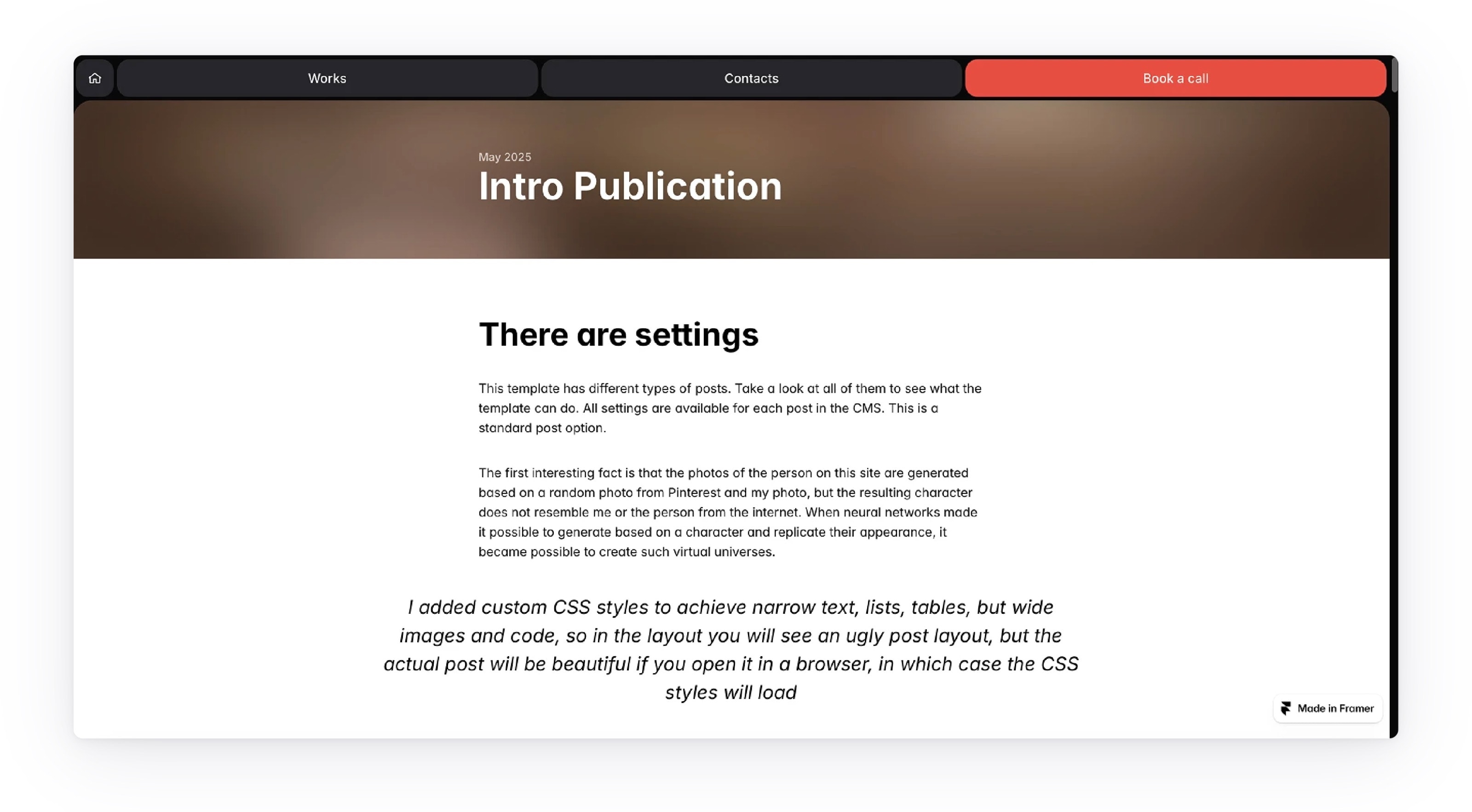 If you want a simple portfolio, you can remove the “My journey” section entirely and leave only the section with your work. You can try this option by following the link /works_only_variant.